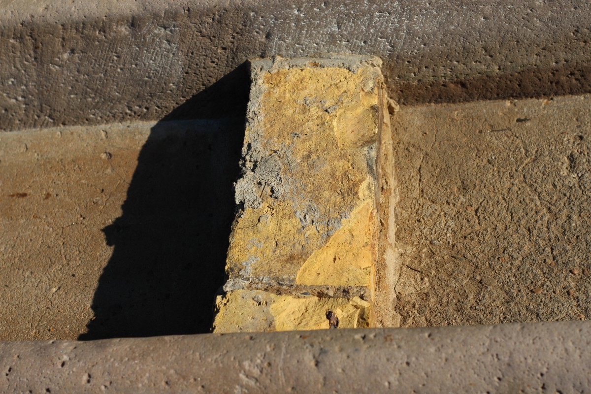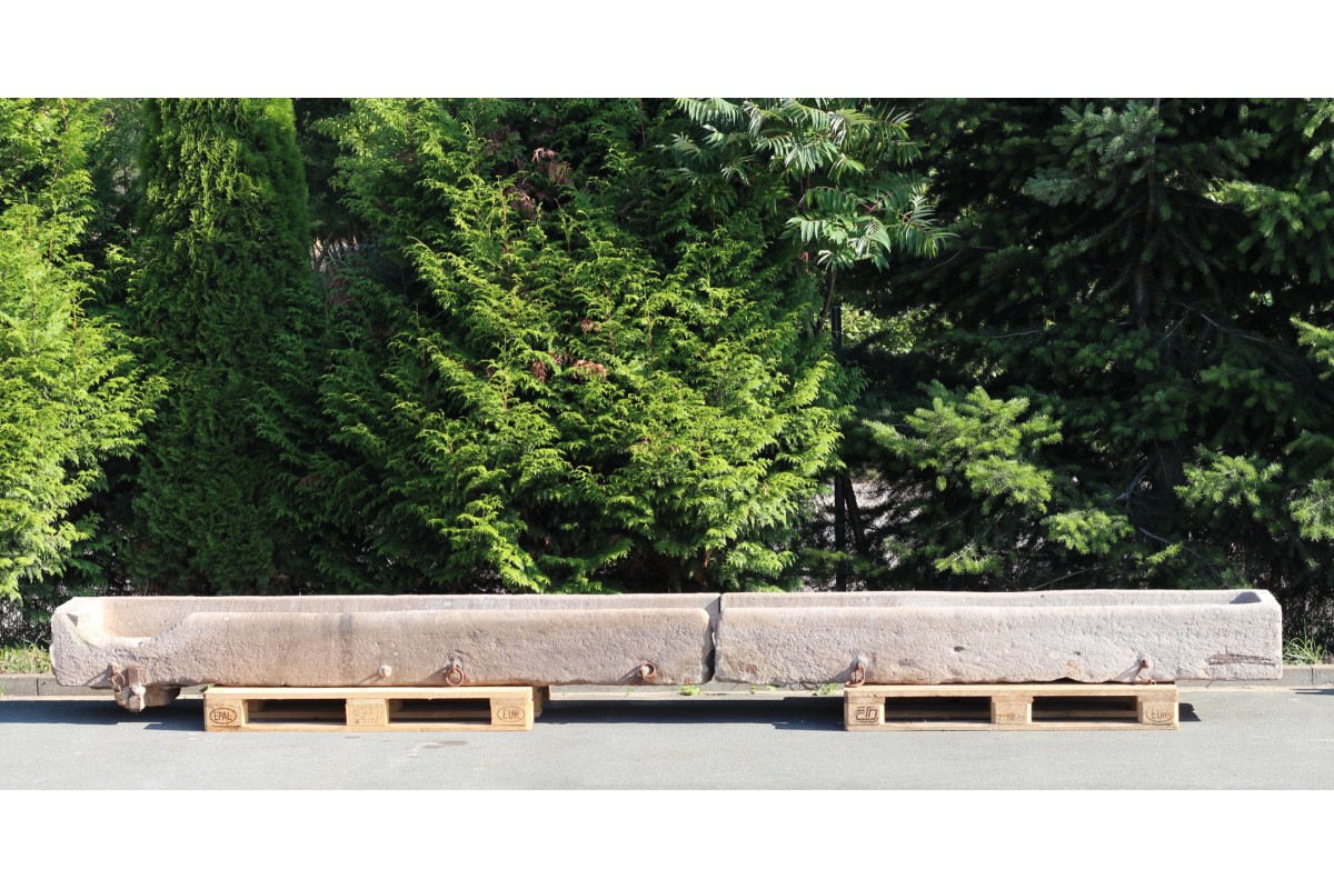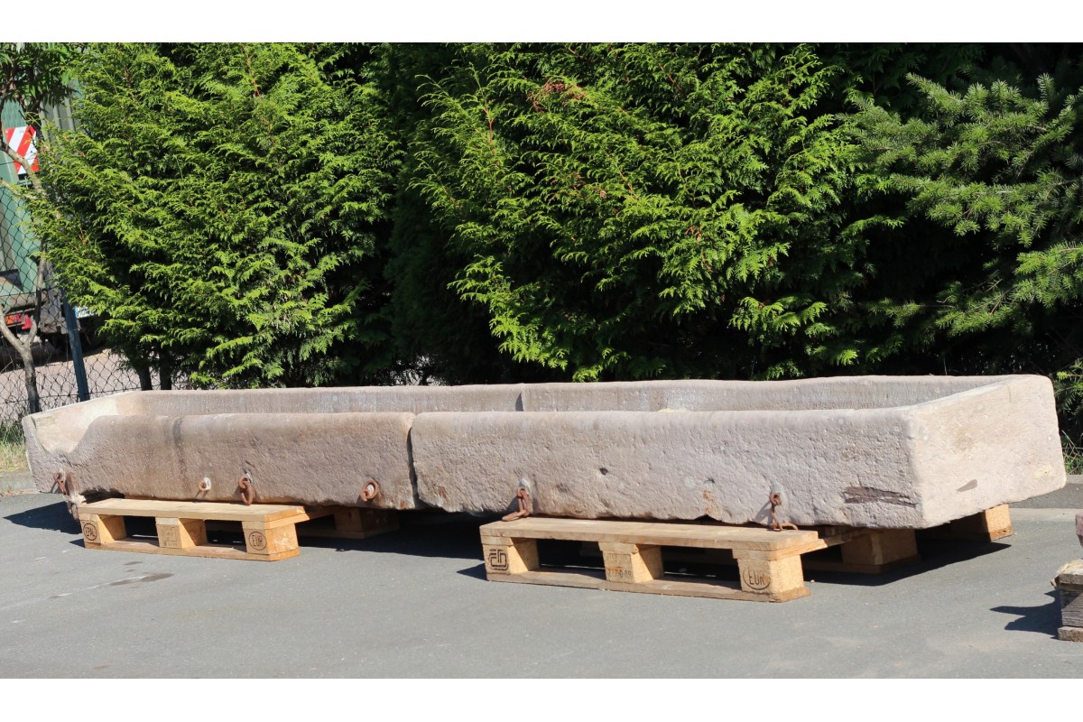 Der Sandsteintrog ist in zwei Hälften geteilt.