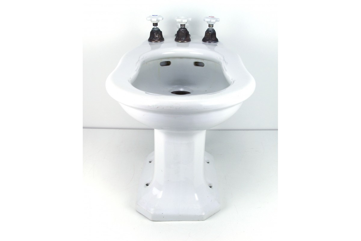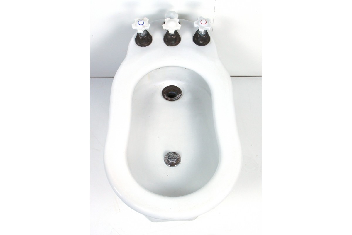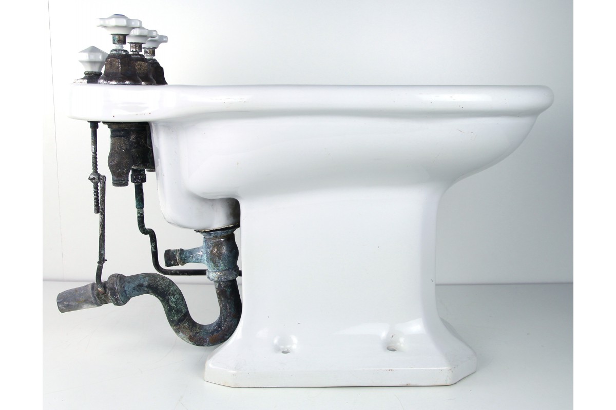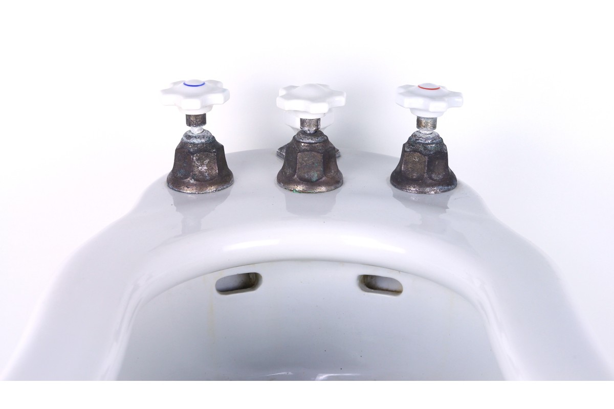 Altes Keramik-Wasch-Becken mit 70er-Jahre Wasserhahn