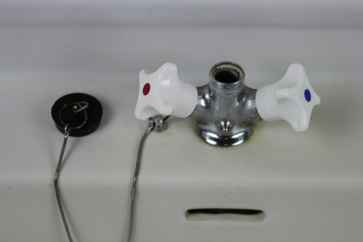 Altes Keramik-Wasch-Becken mit 70er-Jahre Wasserhahn