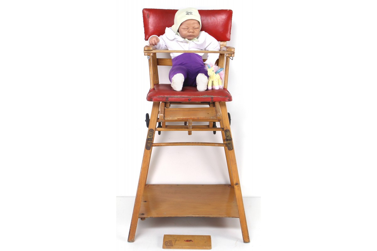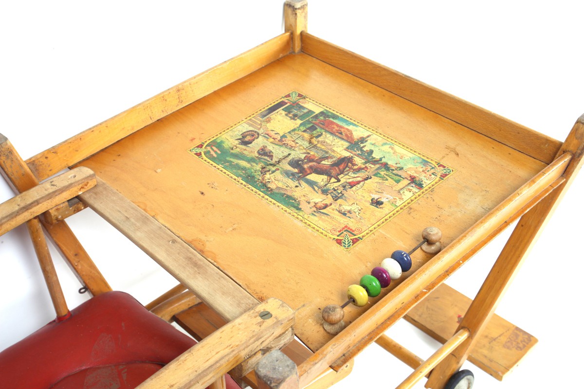 Alter Kinderstuhl mit ausklappbarem Tisch
