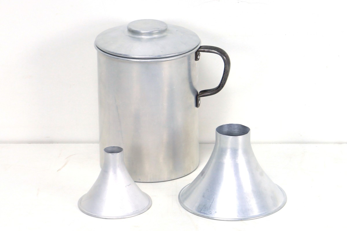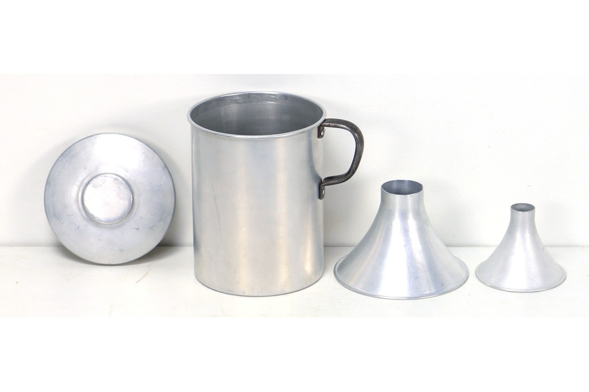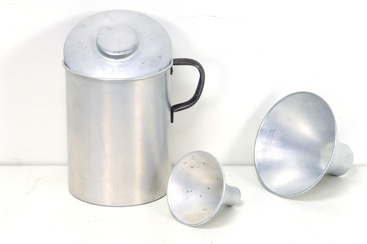 Blechbehälter mit zwei Trichtern