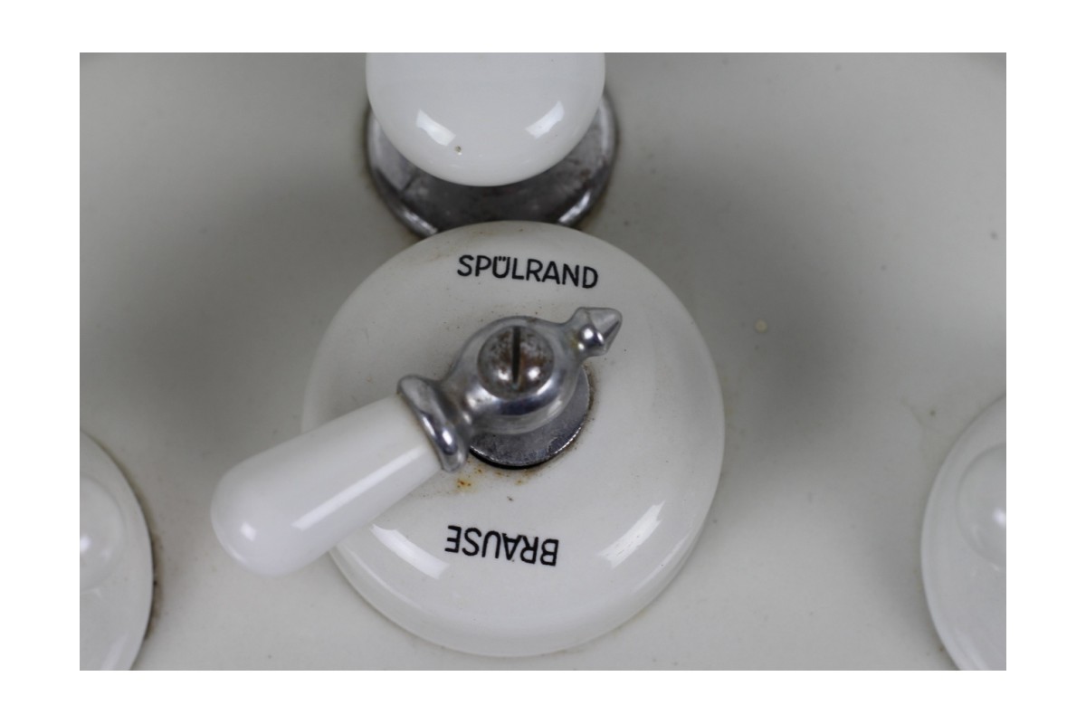 Damit dieses fast antike Bidet noch vor seinem 100. Geburtstag seinen neuen Standort findet, versuchen wir es deshalb jetzt über den Preis: den haben wir von ehemals 695,- € auf sagenhafte 495,- € reduziert. Und da wir von unseren alten Waschbecken her durchaus Respekt vor dem Verpackungsaufwand haben, gibt es für Selbstabholer nochmal 70,- € Preisnachlaß dazu. (Falls Sie diese Möglichkeit nutzen wollen, geben Sie das bitte bei der Bestellung an - wir werden dann einen entsprechenden Rabatt einfügen)