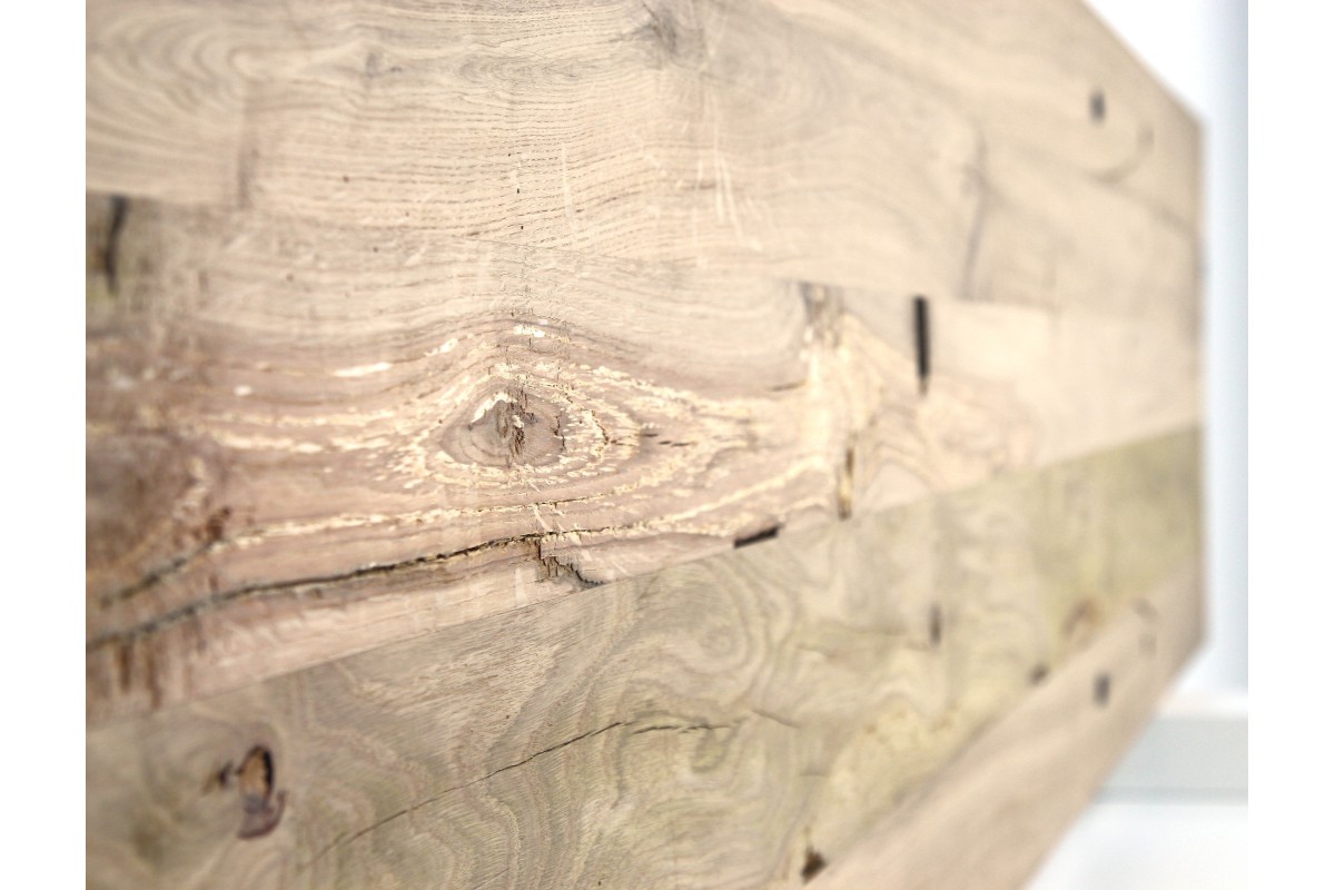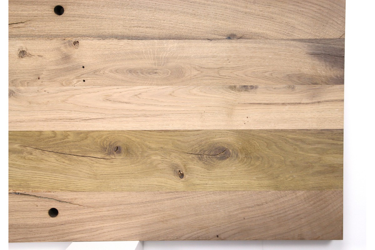 Tischplatte in Waldfarben aus historischem Eichenholz